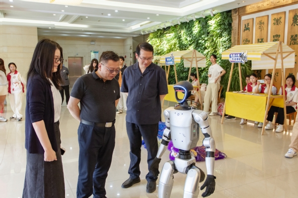随着院长陈立婧宣布科技节开幕,现场气氛推向高潮。灵动的机器人与机器小狗带来吸睛十足的舞蹈秀,精准的机械舞步与趣味互动赢得师生阵阵喝彩;无人机体验区前,师生们争相尝试操控设备,在科技实操中感受飞行原理与创新乐趣。沉浸式的科技体验,让前沿技术触手可及,有效点燃了师生探索创新的热情。