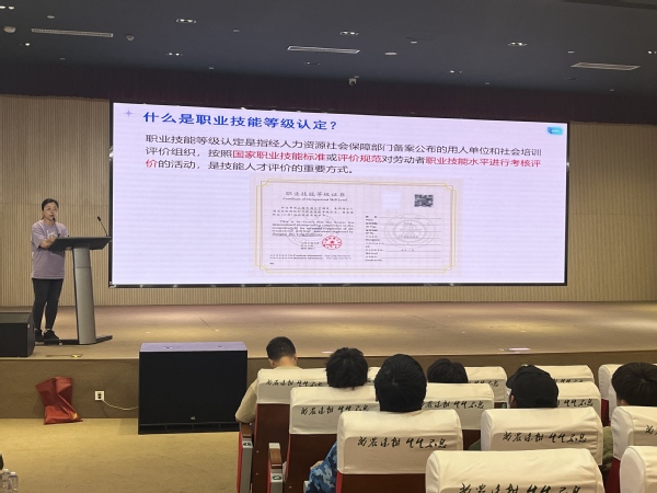 会上公布了2025 年职业技能等级认定的关键时间节点。报名总负责人为王璐老师,学生可通过班级群或辅导员处获取详细报名资料与咨询渠道。