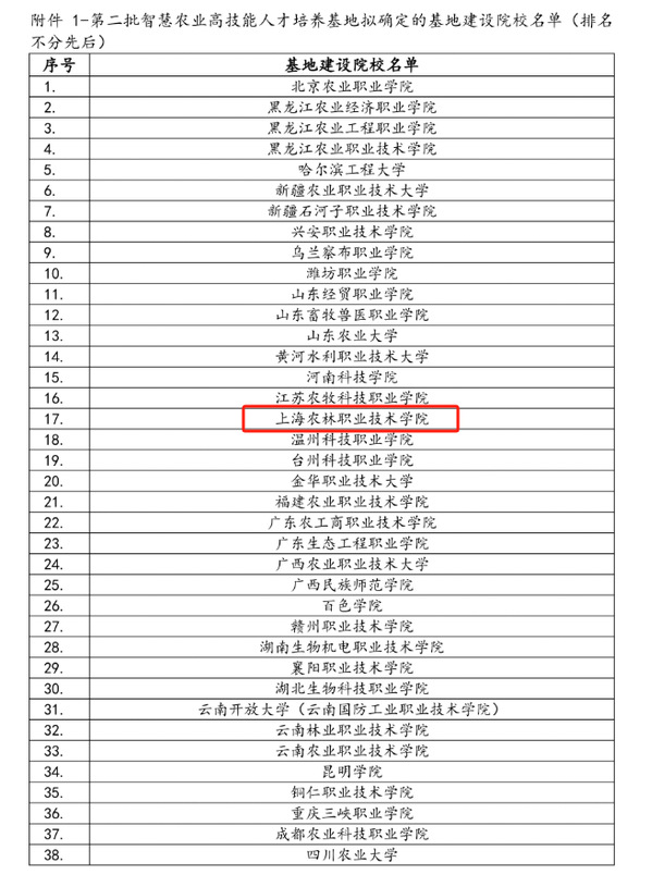 近日,国家农业信息化工程技术研究中心公布了第二批智慧农业高技能人才培养基地建设申报院校遴选结果,上海农林职业技术学院凭借在智慧农业领域的扎实积淀与鲜明特色,成功入选基地建设院校名单,成为上海地区智慧农业高技能人才培养的重要阵地。