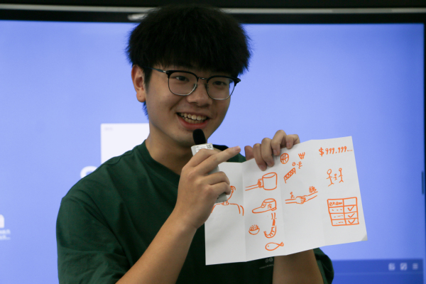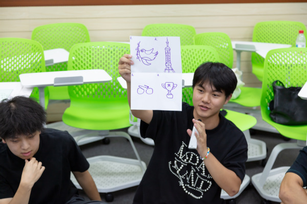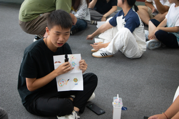 “我画我自己”环节为活动注入温情与深度:每位同学手持A4纸与水彩笔,将纸张均匀分成四等份,分别描绘“自己的名字”“家乡模样”“兴趣爱好”与“未来期待”。轮流分享时,有人用简笔画勾勒家乡山水,有人以符号传递梦想向往,更有同学邀请大家猜测画作含义——轻松互动中,同学们实现自我审视与深度交流,组员间的了解从“知晓名字”升级为“读懂心意”。