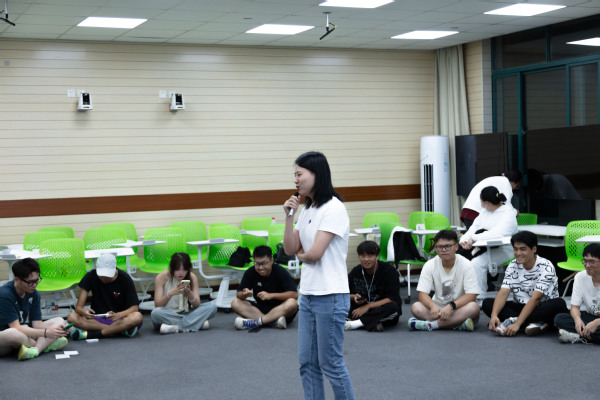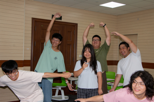 “记人名”游戏环节,各组采用“链式介绍”模式——“我是A,我是A旁边的B,我是A旁边的B旁边的C”,同时每人设计专属动作,将名字与个人特质绑定,既降低记忆难度,又助力成员快速熟悉彼此。紧接着,各组围绕“增强凝聚力”目标,在10分钟内高效完成队名构思、口号创作与造型设计:从激烈讨论到默契配合,团队协作与即兴创造能力得到充分锻炼,成员间距离在热烈交流中进一步拉近。“萝卜蹲”游戏更成为团队风采的展示舞台,各队伍以独特节奏和口号参与,既检验团队反应速度,又让现场氛围持续升温。