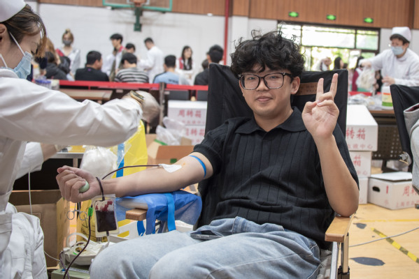 活动现场,志愿者们的细致服务化解了不少学生的紧张。“别担心,放松就好,有任何不舒服随时说。”志愿者曾莉一边帮学弟整理袖口,一边轻声安慰。采血台前,李越指尖微微攥紧,医护人员察觉到她的紧张,放慢操作速度,和她聊起日常:“平时喜欢运动吗?献血后好好休息,不影响正常活动。”轻松的对话间,采血顺利完成,李越看着献血袋,露出了笑容:“原来没那么可怕,想到能帮到别人,特别有意义。”
