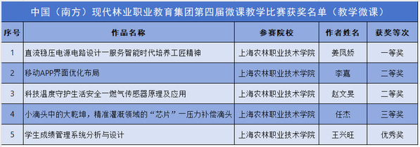 近日,中国(南方)现代林业职业教育集团第四届微课教学比赛获奖名单正式揭晓,我校5位教师凭借扎实的教学功底与创新的教学设计理念崭露头角,成功斩获多个奖项。