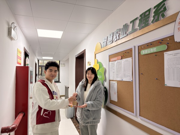 活动现场,智工系学生会成员们满怀热忱、认真值守,为辛勤工作的教职工和课间路过的同学们递上一杯杯热气腾腾的香茶,同时送上“冬至安康,温暖过冬”的诚挚祝福。一杯热茶,一声问候,不仅驱散了冬日的寒意,更在师生之间搭建起一座沟通心灵、增进理解的桥梁。