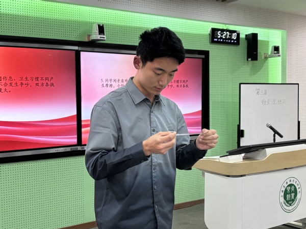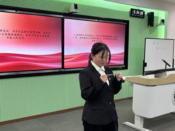 情景模拟问答环节聚焦班级管理中的现实问题,如“如何处理同学间的矛盾纠纷”“怎样提升课堂出勤率”等,参赛代表现场抽题作答,展现出较强的责任意识与问题解决能力,彰显了新时代学生干部的综合素养。