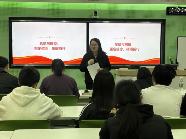 比赛最后,智工系党总支副书记陆琳作总结发言。她充分肯定了各班级在班风建设中的创新实践与责任担当,指出本次活动既是一次工作晾晒,也是一次经验交流,既展现了班级特色,也反映出共性问题。她强调,班长是处理班级事务的一面旗帜,班风建设是落实新时代立德树人工程的重要抓手,是推动“六位一体”育人体系走深走实的关键环节。她勉励全体班级骨干进一步增强服务意识与管理能力,要德智体美劳全面发展,带领班委会落实改进措施,共同打造“和谐、文明、进取”的班级共同体。陆琳还指出,本次活动是展示、互学、反思、成长的机会,希望同学们培养个人能力并服务班级综合发展,在班风建设中实现自我提升与集体进步的双赢。